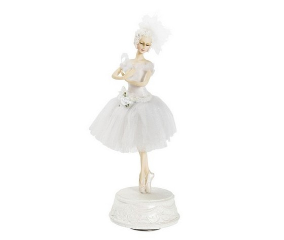 Carillon in resina a carica musicale, con ballerina di danza classica e tutù bianco.