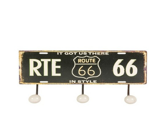 Appendiabiti, appendino da parete a 3 ganci in metallo di colore bianco e nero con scritta "route 66".