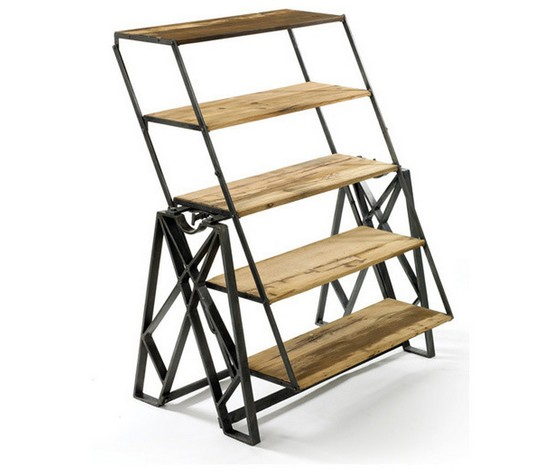 Libreria in legno e ferro girevole stile industrial.