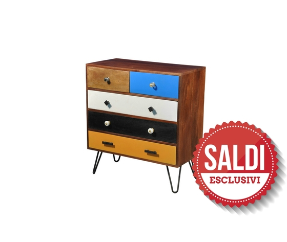Cassettiera, mobiletto con cassetti colorati e piedini, stile industrial.