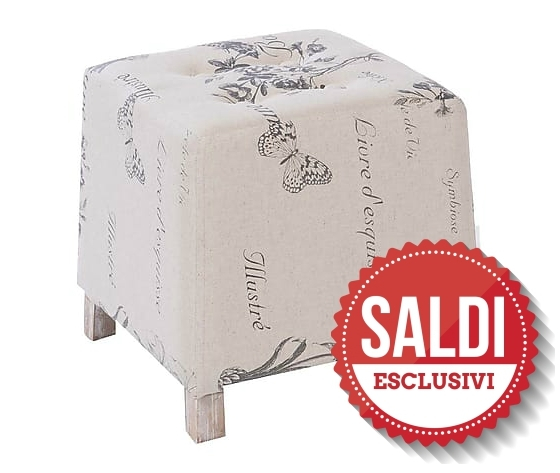 Pouf quadrato tessuto fiori bianco piedini.