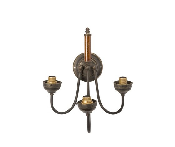 Applique, faretto, lampada da parete in ottone brunito, anticato con 3 luci.