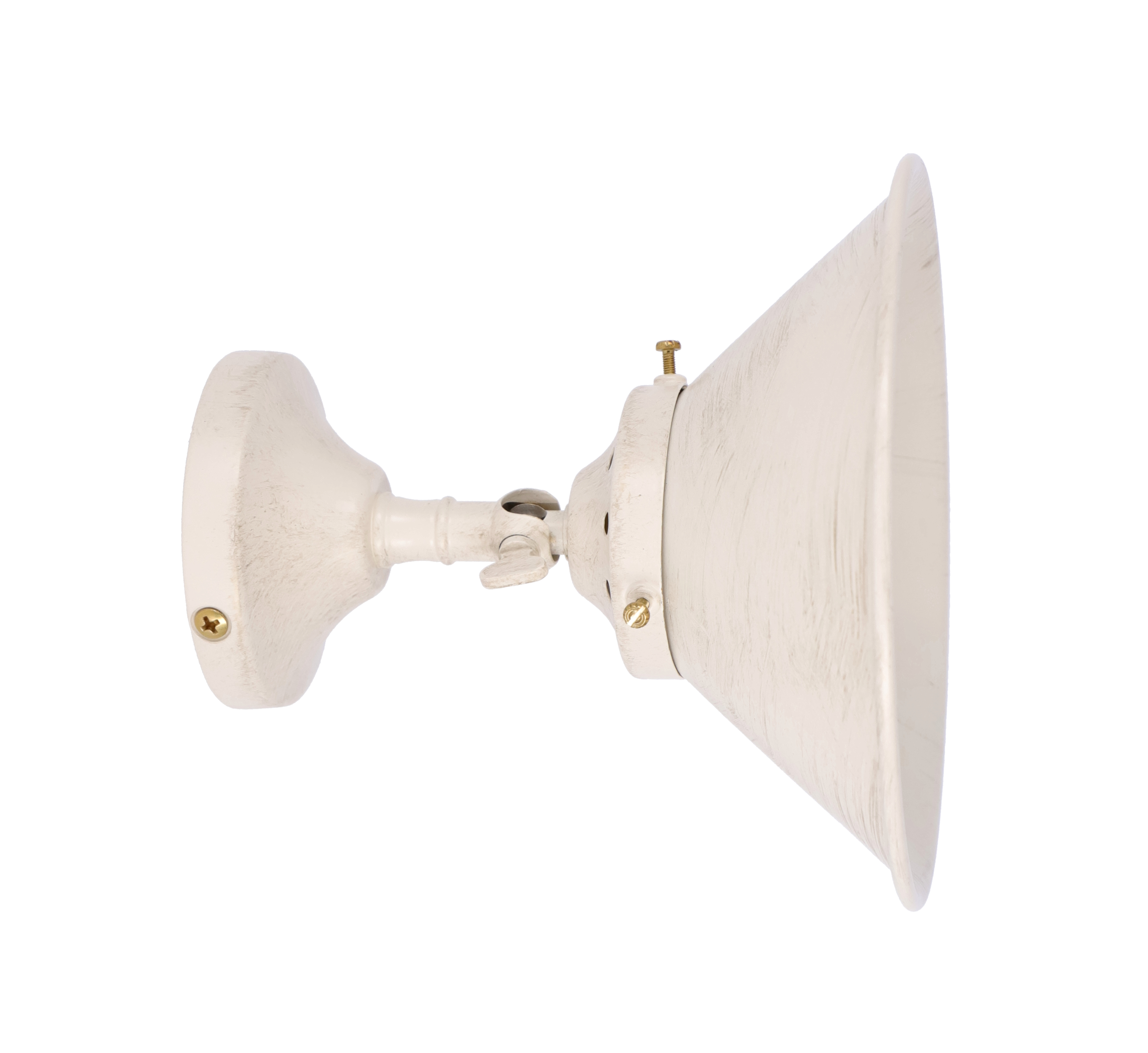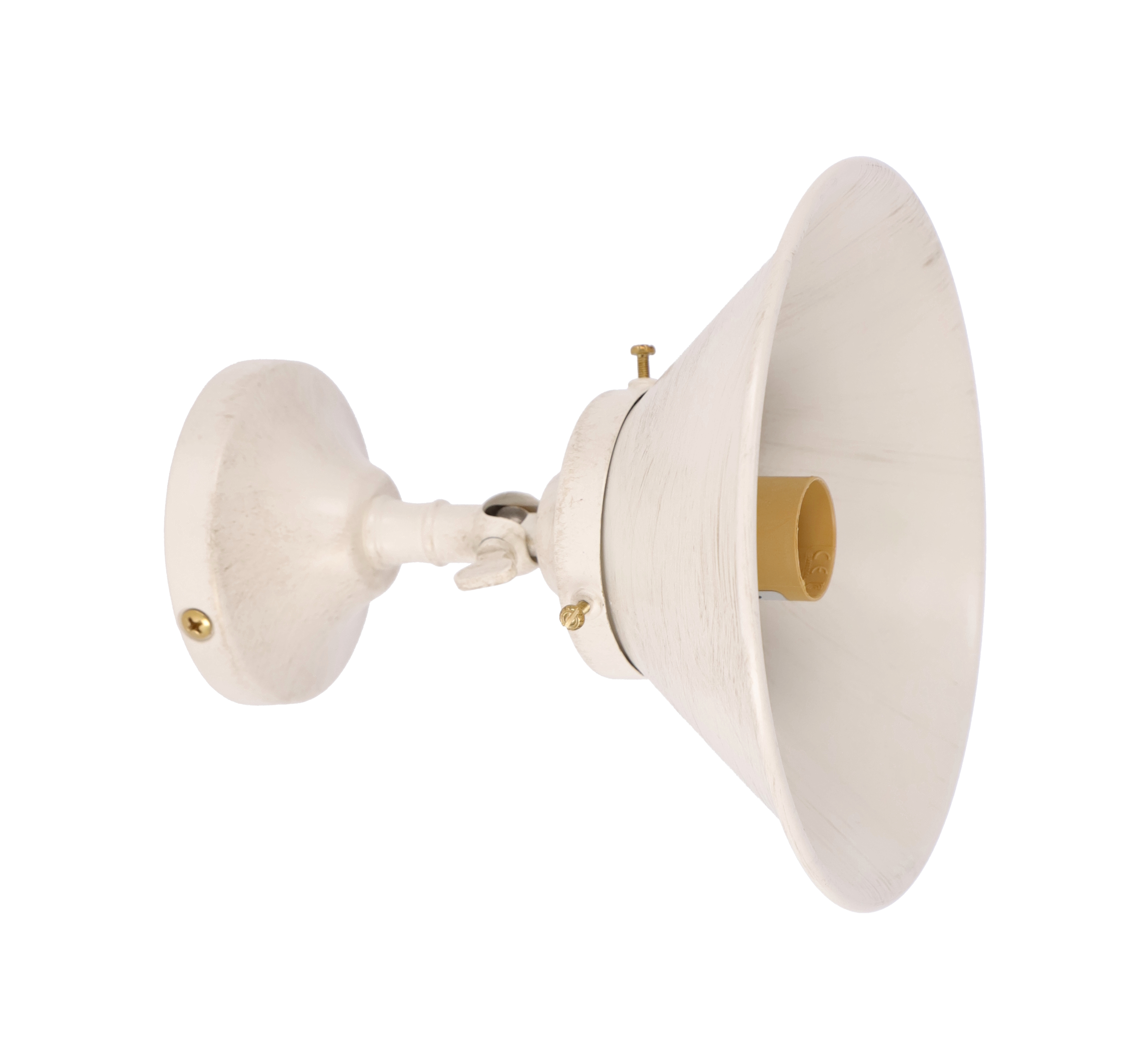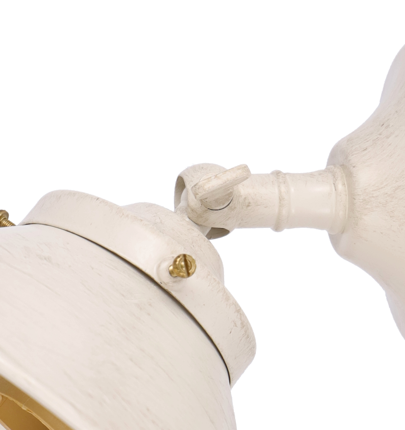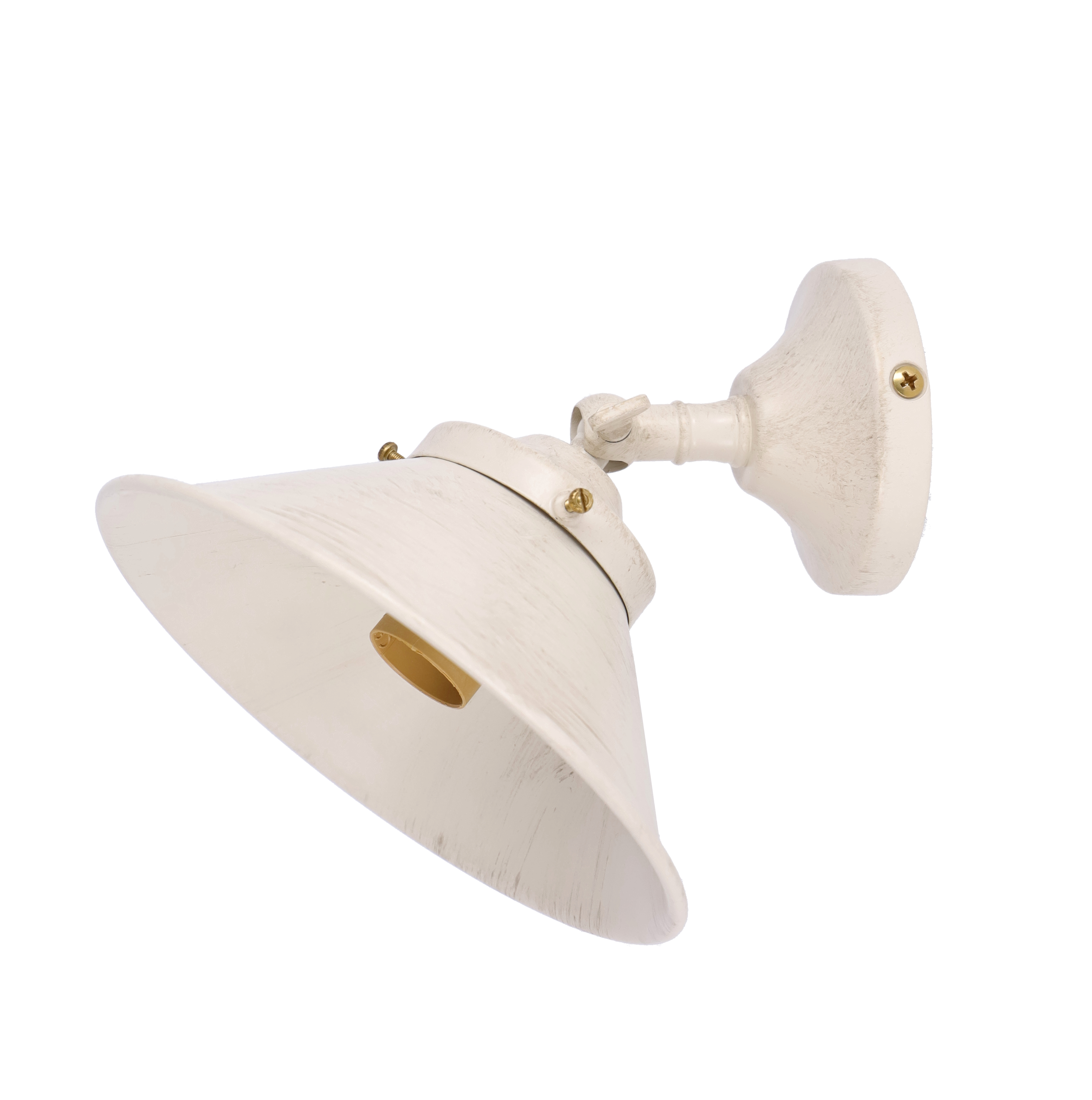 Applique vintage in ottone, laccata bianca anticata a 1 luce, senza paralume. Potenze max 60 W attacco E14.