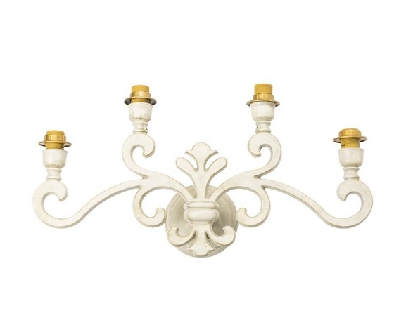 Applique, lampada da parete in ottone anticato di colore bianco, modello giglio fiorentino a 4 luci. Potenza max 40W attacco E14.