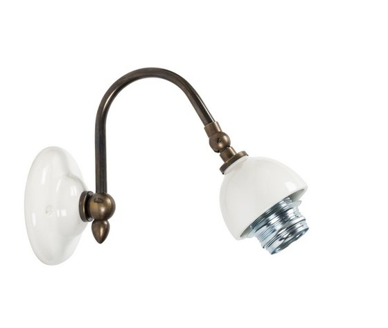 Applique, lampada da parete snodabile, regolabile con struttura in ottone e base e portalampada in ceramica bianca laccata a 1 luce.