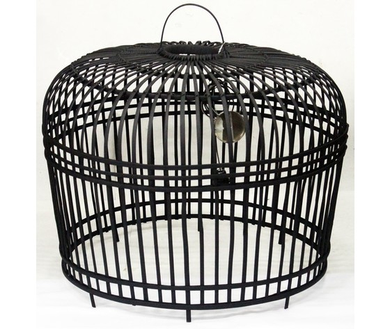 Lampada, lampadario a sospensione in rattan, vimini di colore nero.