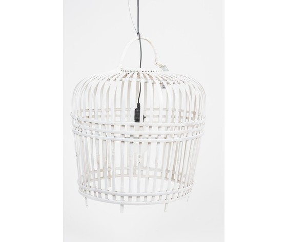 Lampada, lampadario a sospensione in rattan, vimini di colore bianco.