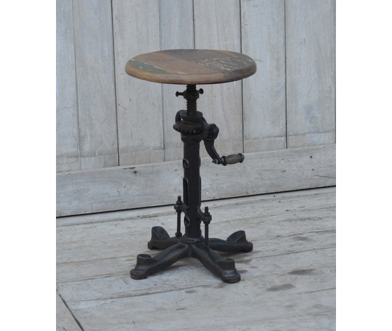 Sgabello Bar regolabile in altezza con struttura in metallo e seduta in legno.