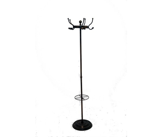 Appendiabiti, attaccapanni da terra in metallo nero con portaombrelli.