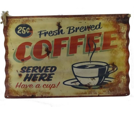 Pannello in metallo coffee di colore giallo, rosso e blu.