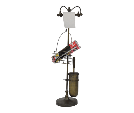Portarotolo con scopino da terra, da bagno in legno e ottone.