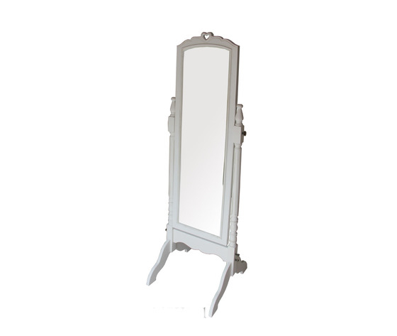 Specchiera da terra bianca in legno con inclinazione regolabile. Stile shabby chic.