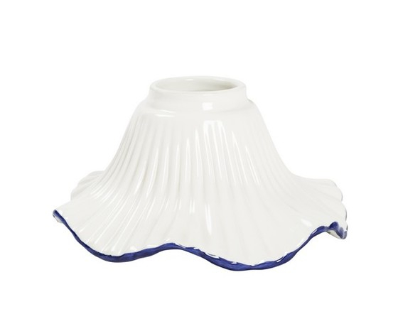 Paralume di ricambio in ceramica a forma di campanella, colore bianco e blu con fiori all'interno.