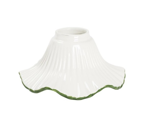 Paralume di ricambio in ceramica a forma di campanella, colore bianco e verde con fiori all'interno.