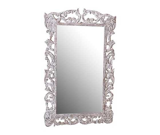 Specchio, specchiera da parete di colore bianco in legno lavorato anticato.