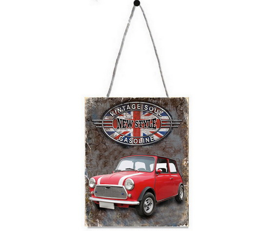 Pannello, targa, placca in metallo colorato da parete con scritte.