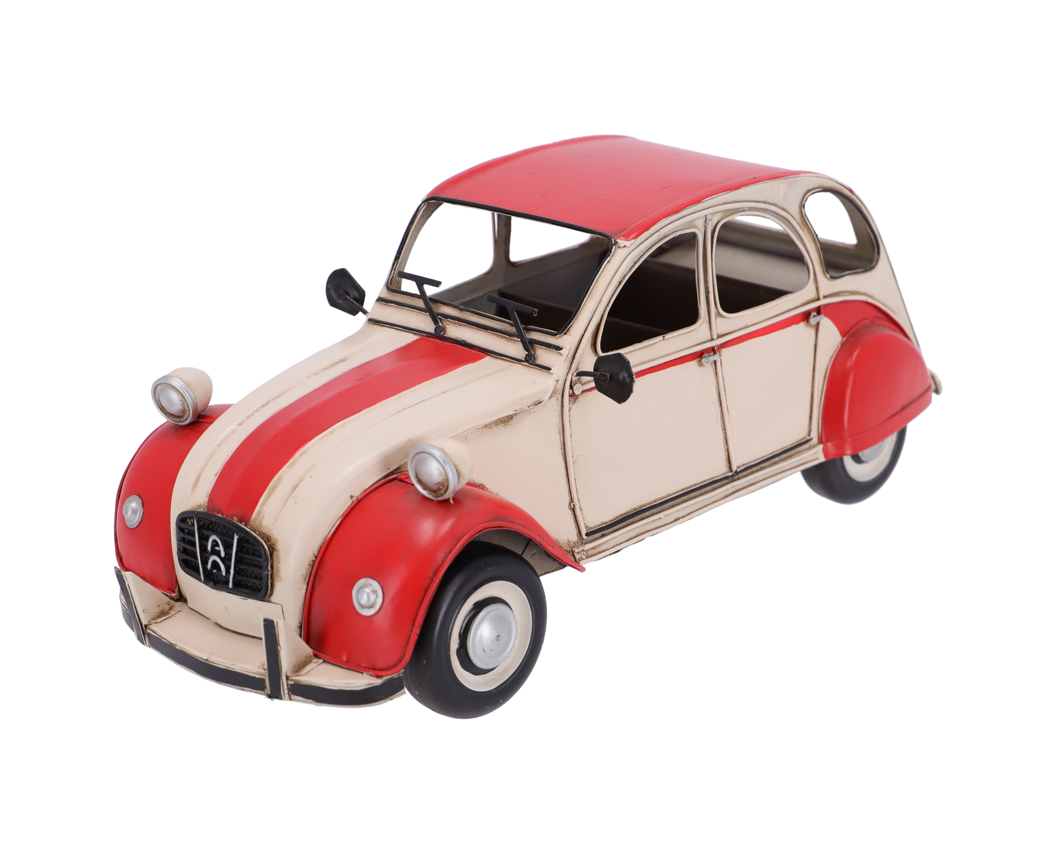 Tra modellismo e complemento d'arredo, questa auto d'epoca in latta sarà una decorazione bellissima per la tua casa. Originale, si adatta ad un soggiorno industriale o ad una camera per bambini.