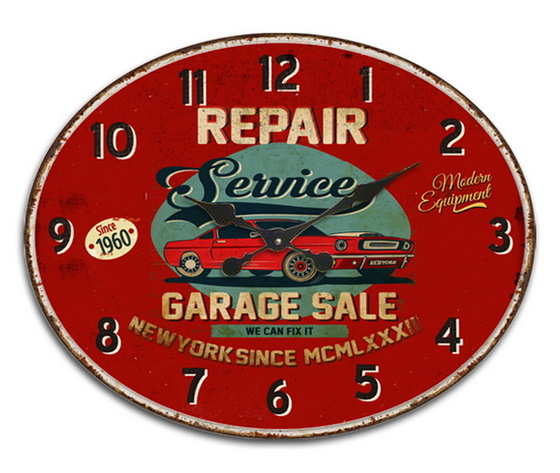 Orologio da parete, in stile vintage, come macchina del tempo che ti riporta in un garage americano degl'anni 60!