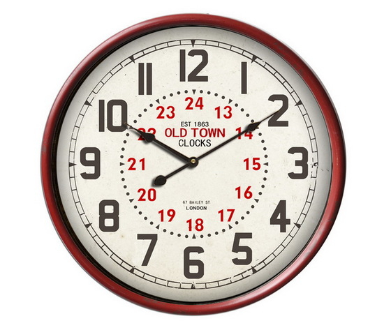 Il quadrante poi, su uno sfondo bianco presenta un doppio giro di cifre per segnare l'ora e la stampa "Old Town Clocks".