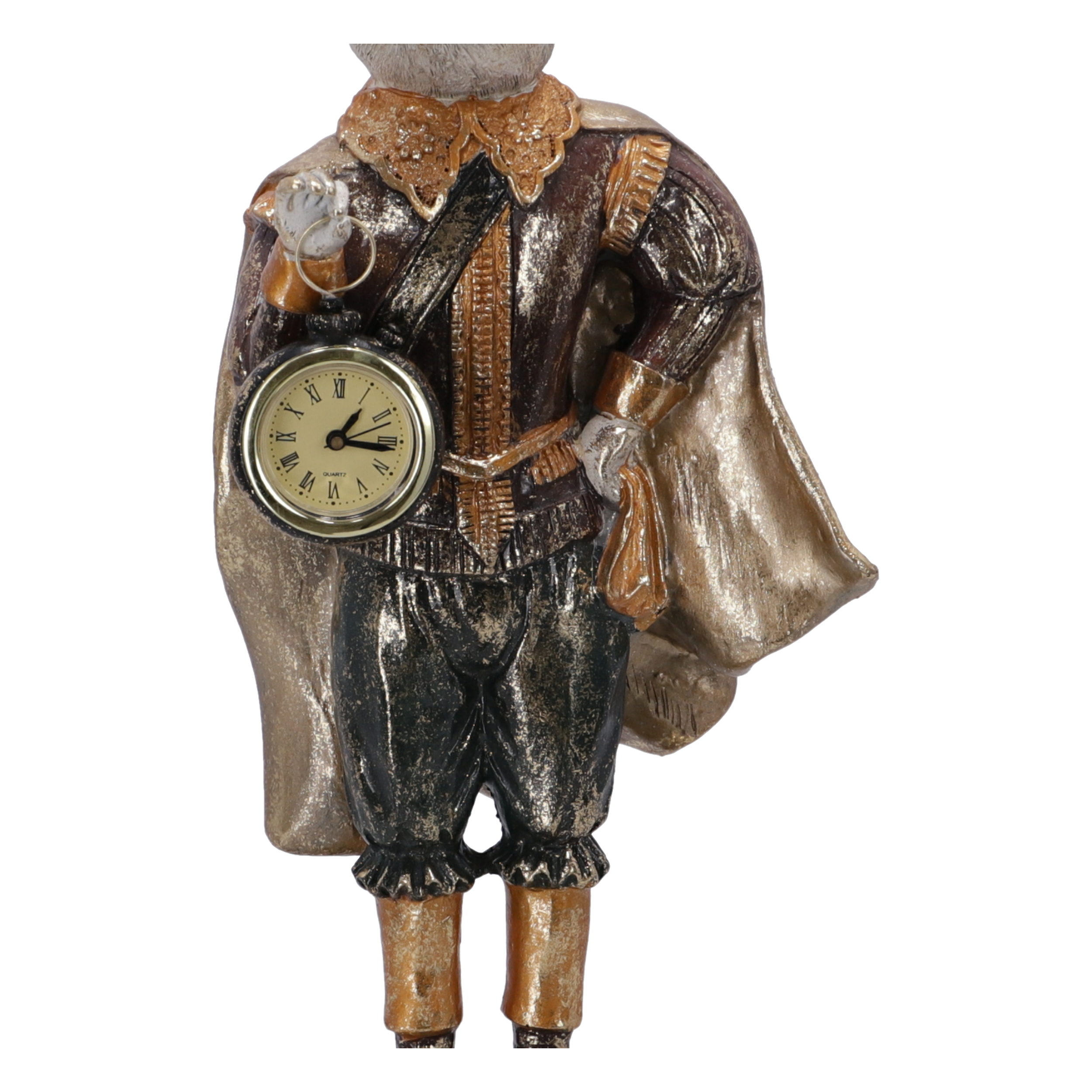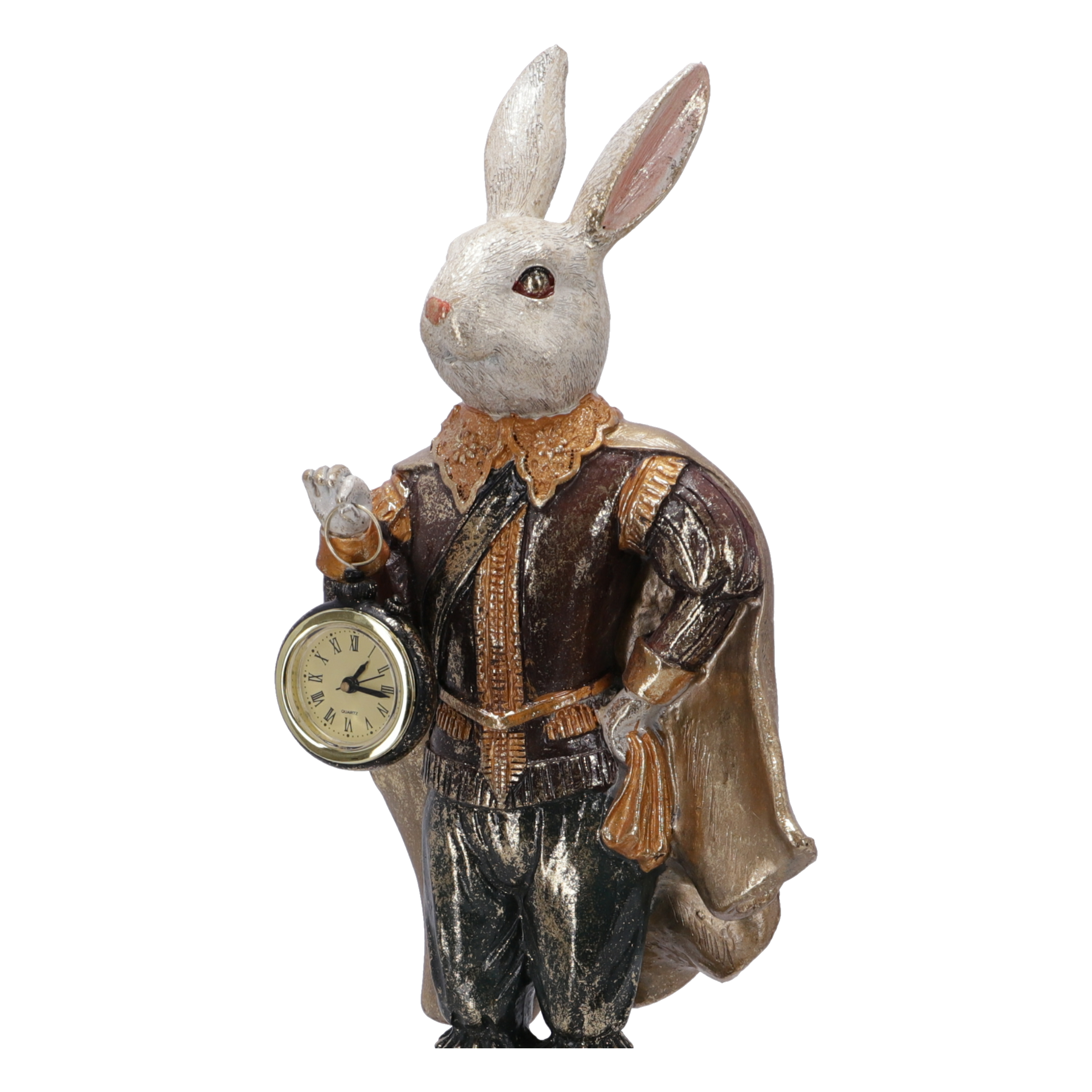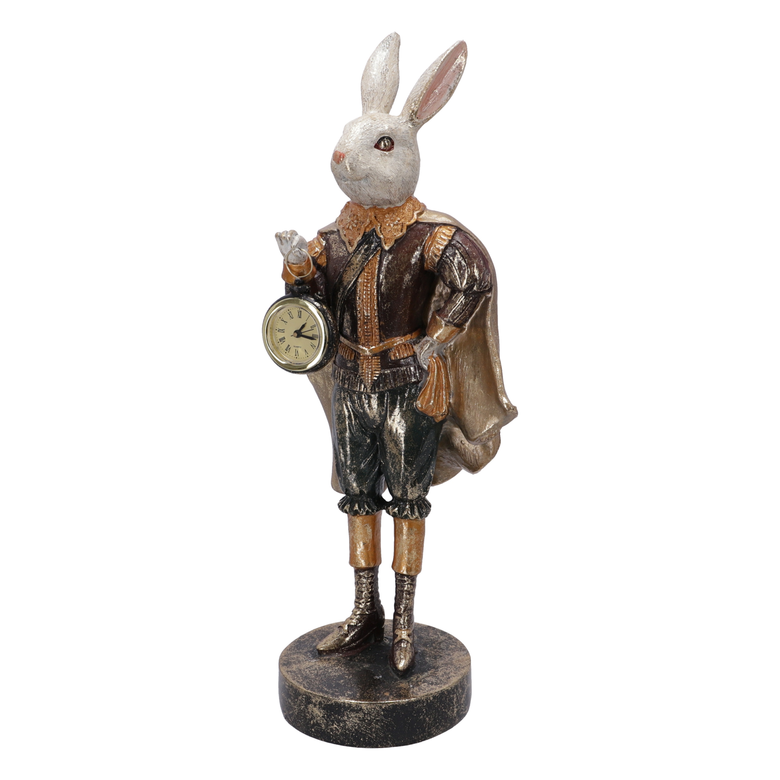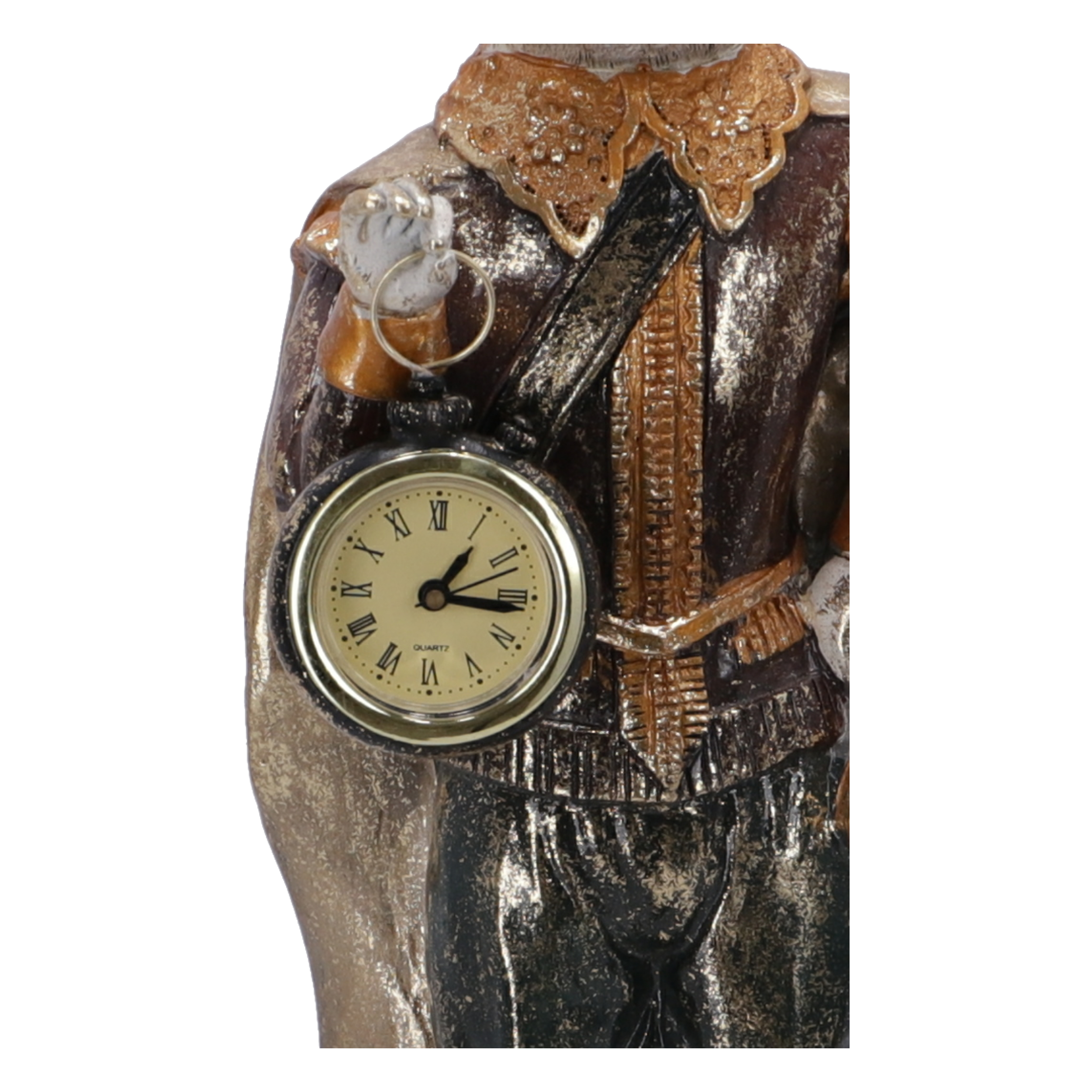Il quadrante, perfettamente funzionante, pende dalla mano della statua in resina decorativa in stile Old England, uno stile che sembra magicamente uscire direttamente dal mondo di "Alice nel Paese delle Meraviglie".