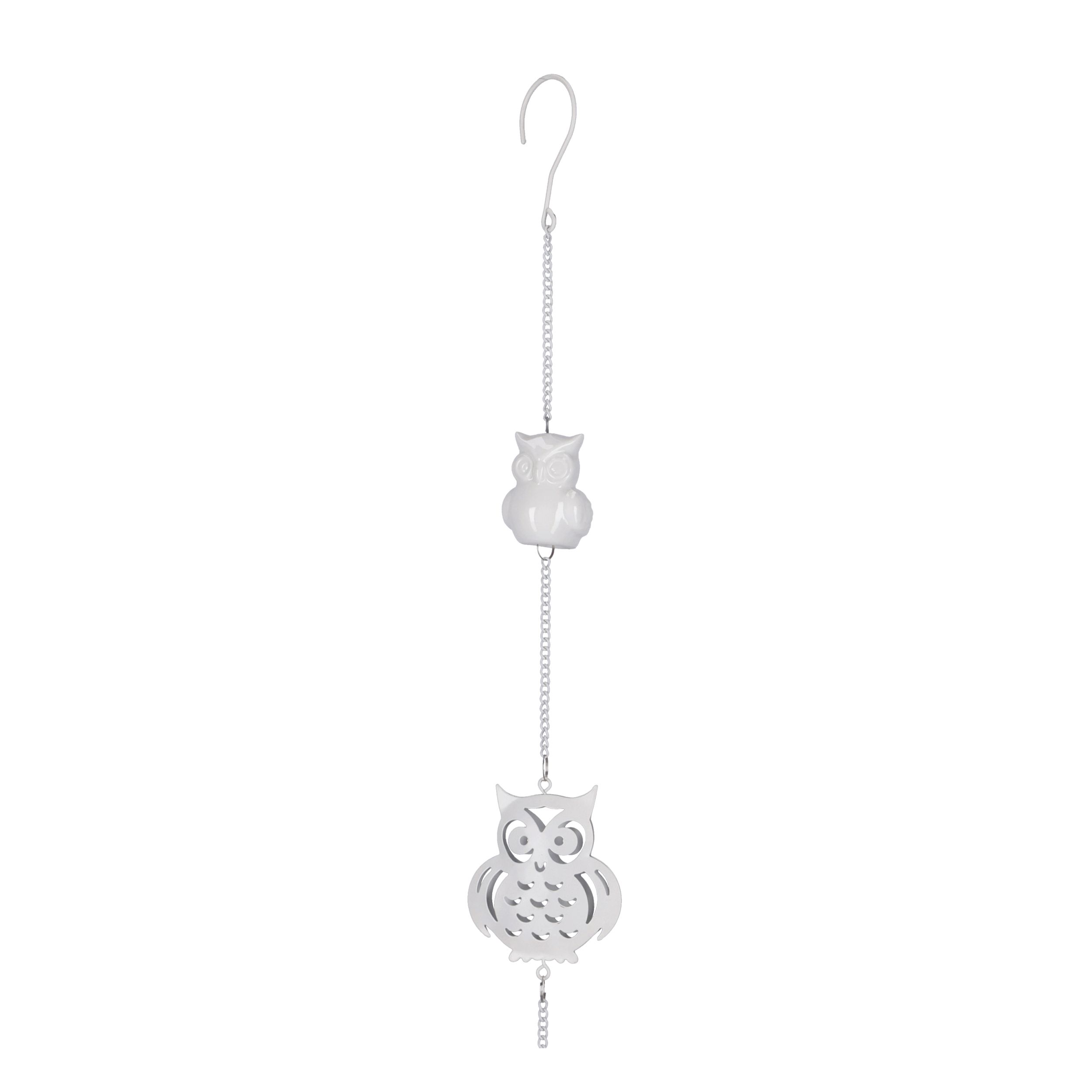 Gancio decorativo ferro bianco gufo ceramica