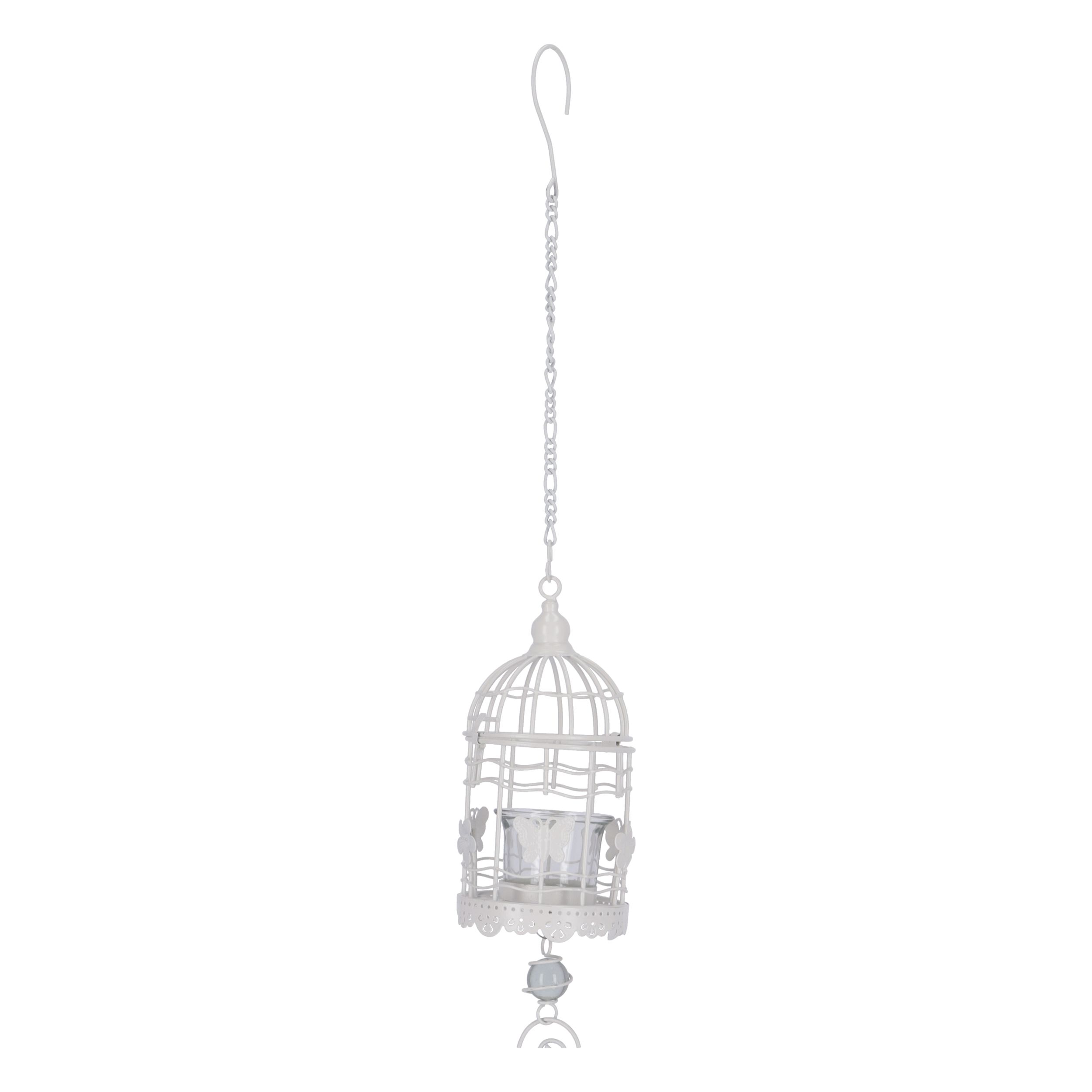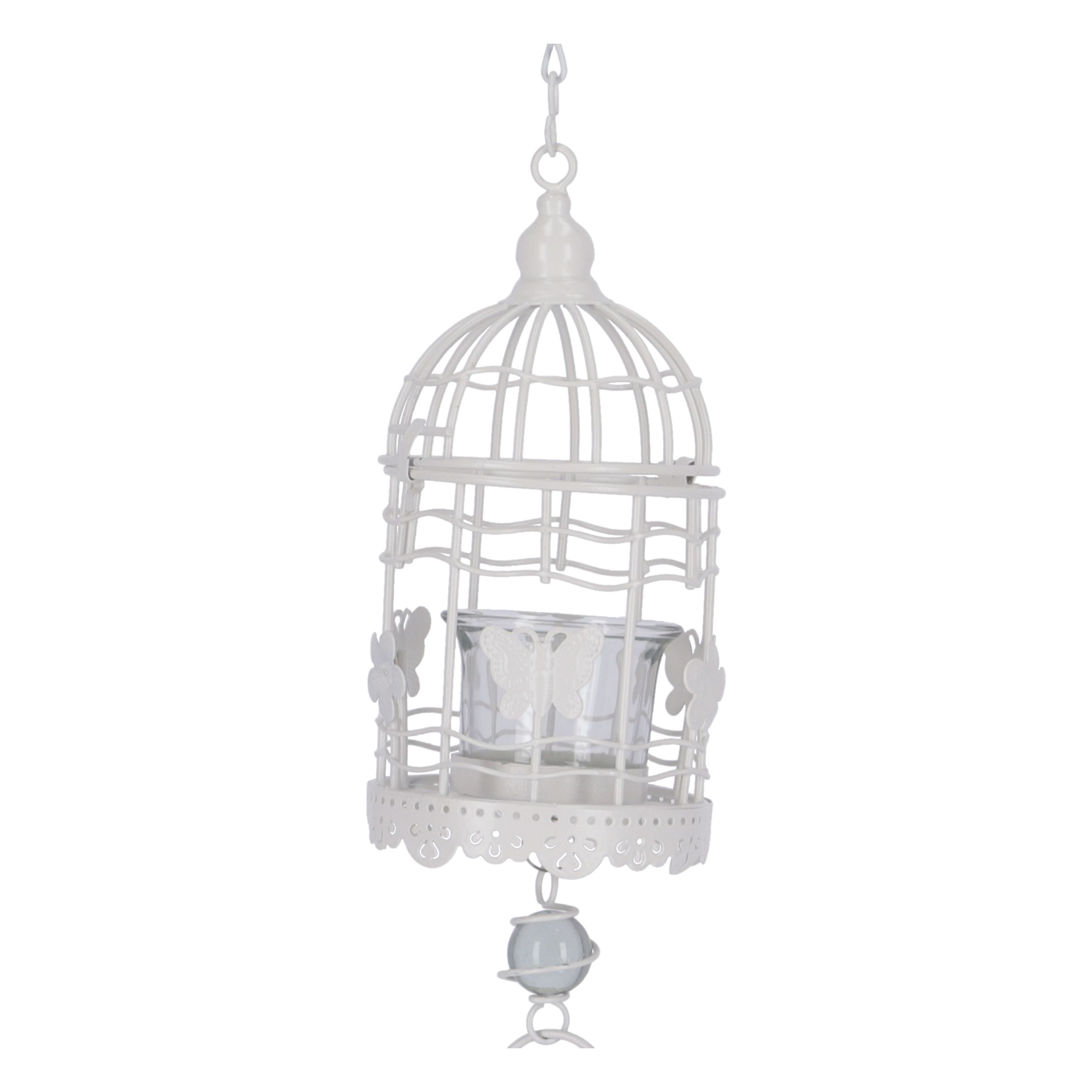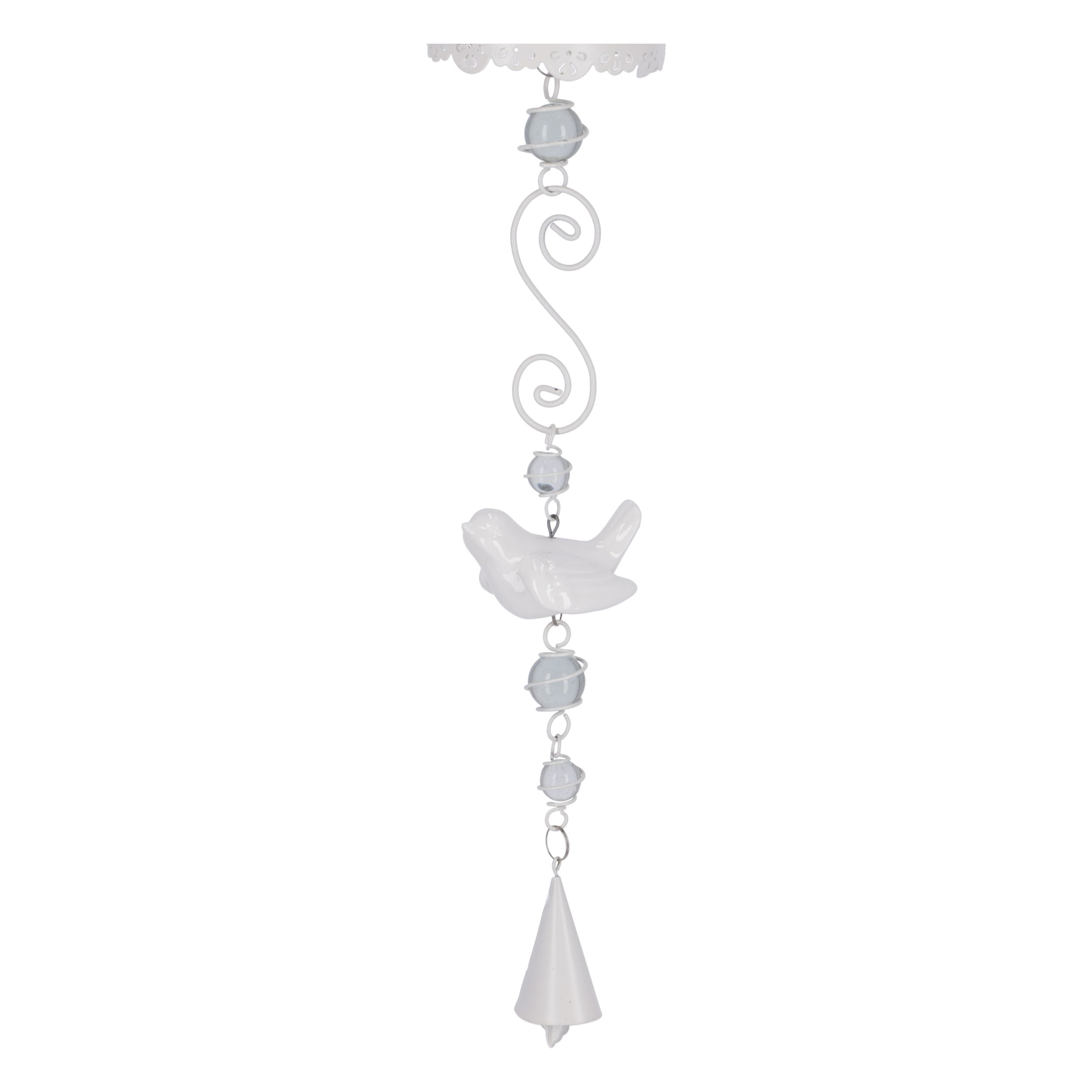 Porta candela da appendere ferro bianco/uccellino ceramica