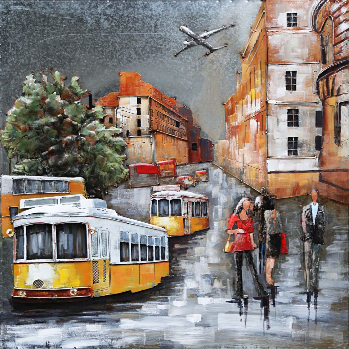 Dipinto Su Metallo Bus Lisbona 100x100 Cm