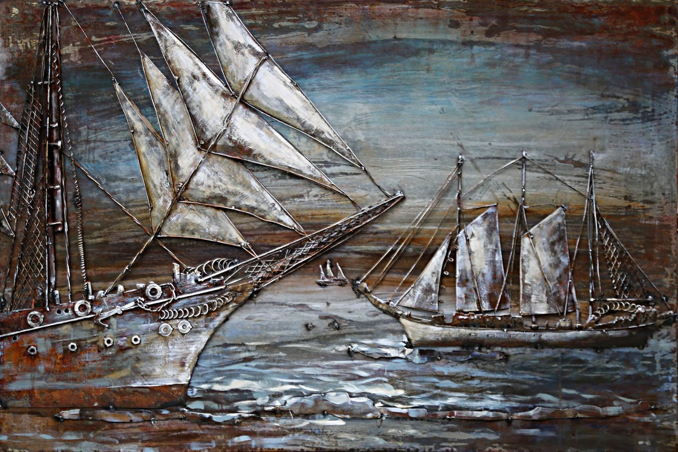 Quadro Dipinto su Metallo navi tempesta